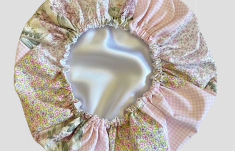 Touca de Dormir cetim Patchwork – Tons de Rosa Exclusivos e Estilo Vintage